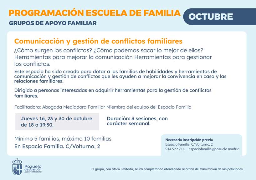 Requiere inscripción previa en: espaciofamilia@pozuelo.madrid (Política de privacidad) o 91 452 27 11.