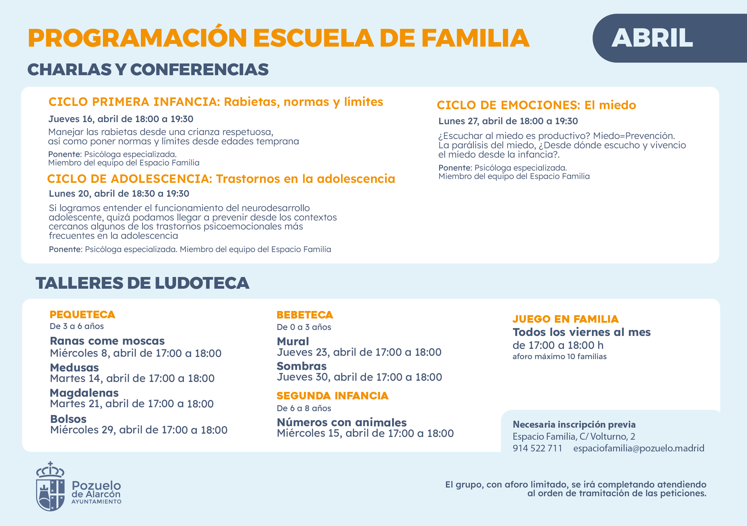 *Requiere inscripción previa en: espaciofamilia@pozuelo.madrid (Política de privacidad) o 91 452 27 11.