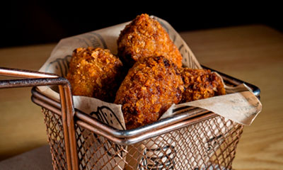 Minigancho, miniburguer con foie fresco y trufa negra con patatas fritas.