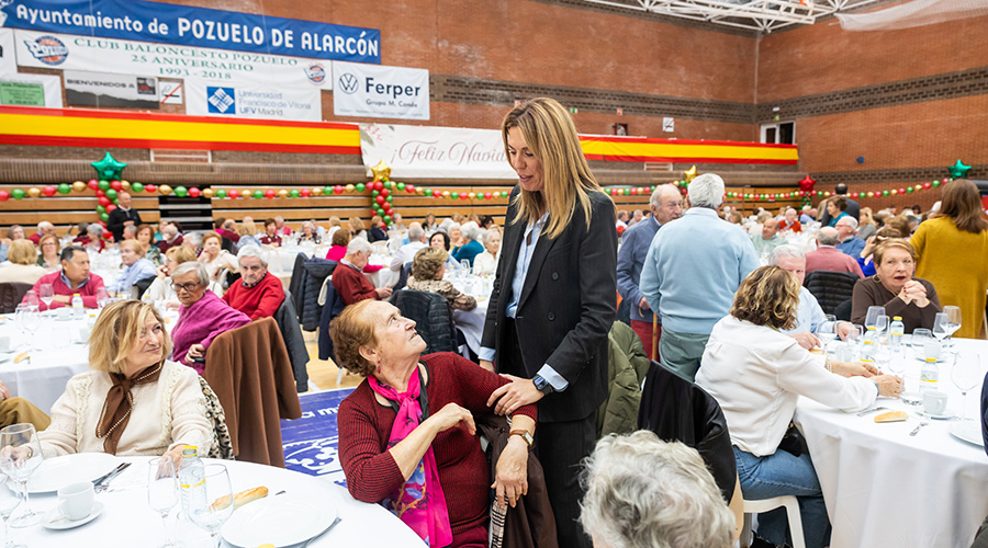 Mas de 450 mayores de Pozuelo de Alarcón celebraron el pasado viernes la tradicional comida de Navidad que organiza el Consistorio en estas fechas y que tuvo lugar en el polideportivo municipal El Torreón. La alcaldesa, Paloma Tejero, acompañada por el concejal de Mayores, Juan Manuel Ruiz, y otros miembros de la Corporación Municipal, compartió con ellos esta jornada en la que, aparte de degustar caldereta, disfrutaron también de baile, bingo y una merienda de chocolate con churros.