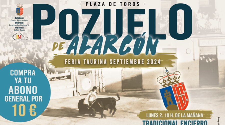 La venta de entradas y abonos (por 10 euros) estarán a la venta en las taquillas de la Plaza de Toros los días 31 de agosto y 1, 2, 6 y 7 de septiembre de 11 a 14 horas y de 16 a 20 horas. En venta on line también estará disponible a través de la web www.bacantix.com/Entradas/?id=plpozueloalarcon y por WhatsApp en el 614352912.