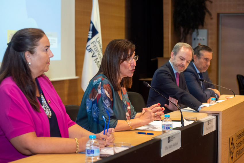 “Derechos Humanos y lucha contra el terrorismo” es el título de las VI Jornadas sobre Terrorismo que se están celebrando hoy en la Universidad Francisco de Vitoria, emplazada en Pozuelo. La alcaldesa, Susana Pérez Quislant, ha participado en la inauguración de este encuentro al que también han asistido el consejero de Justicia, Interior y Víctimas, Enrique López, el rector de la UVF, Daniel Sada, el secretario General de la UFV, José Antonio Verdejo, y la presidenta de la AVT, Maite Araluce, entre otras autoridades.